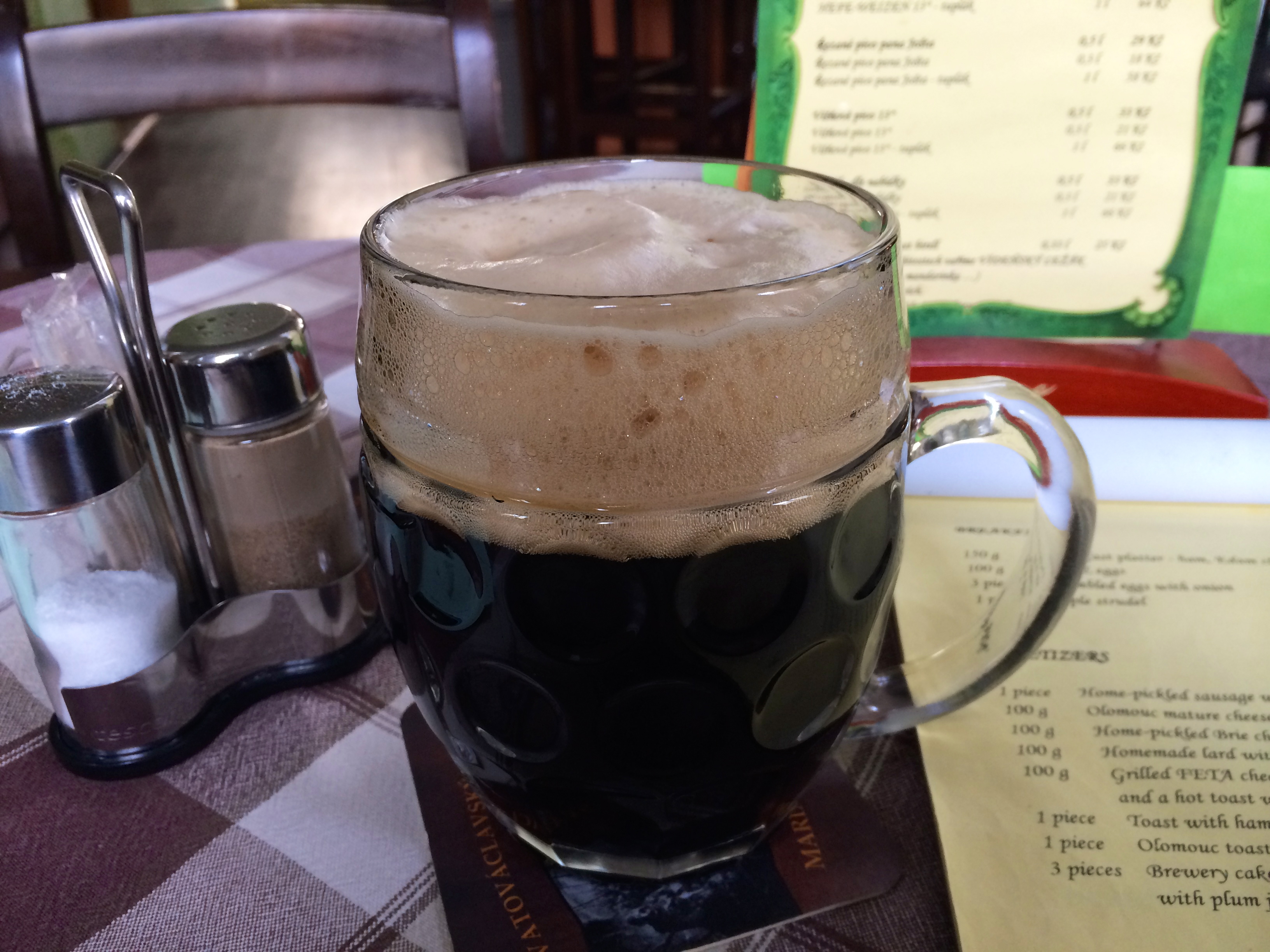 In need of some lunch, I headed to Svatováclavský Pivovar (pivo is beer in Czech, pivovar is beer bar) to try their dark brew and TVARUŽKY, the famous stinky cheese…