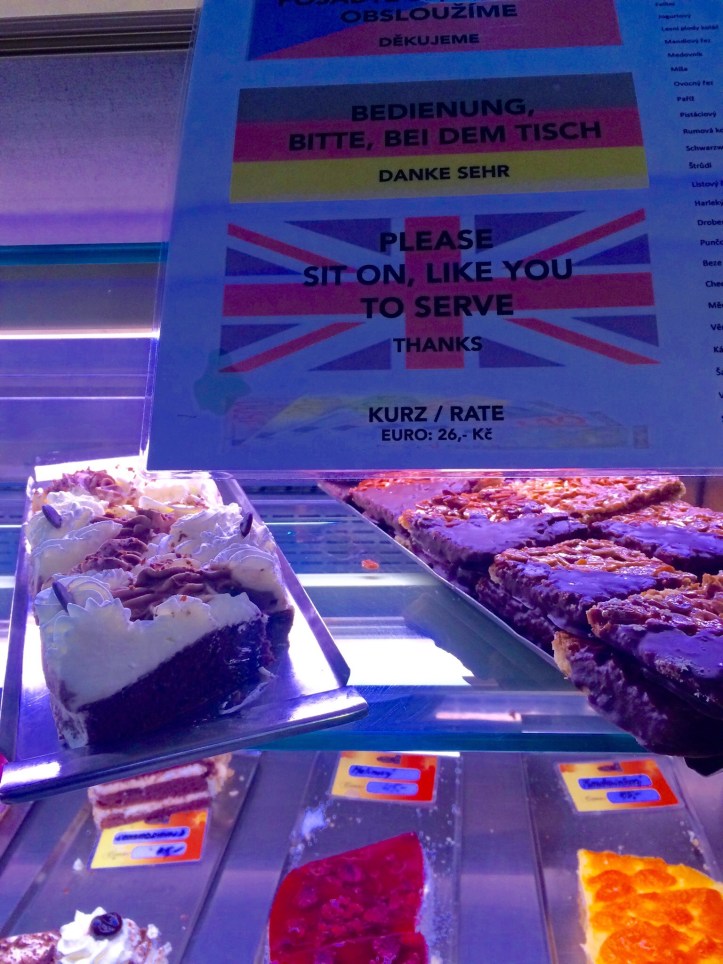 Czenglish bonus! You can’t even relax with some coffee and cake without noticing some language faux pas. Try to spot it 😛