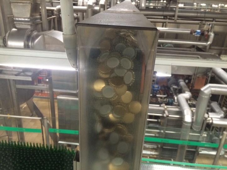 It was an enormous room with tons of equipment – industrial conveyor belts and futuristic flumes criss-crossing here and there. We watched recycled bottles be washed and sorted – it was hypnotizing! – and here are bottle caps making their way through sorting. In my next life I want to be the guy whose job it was to wear goggles and take off soggy labels that didn’t fully come off the washed bottles. So relaxing and mindless, and I bet it involves free beer.