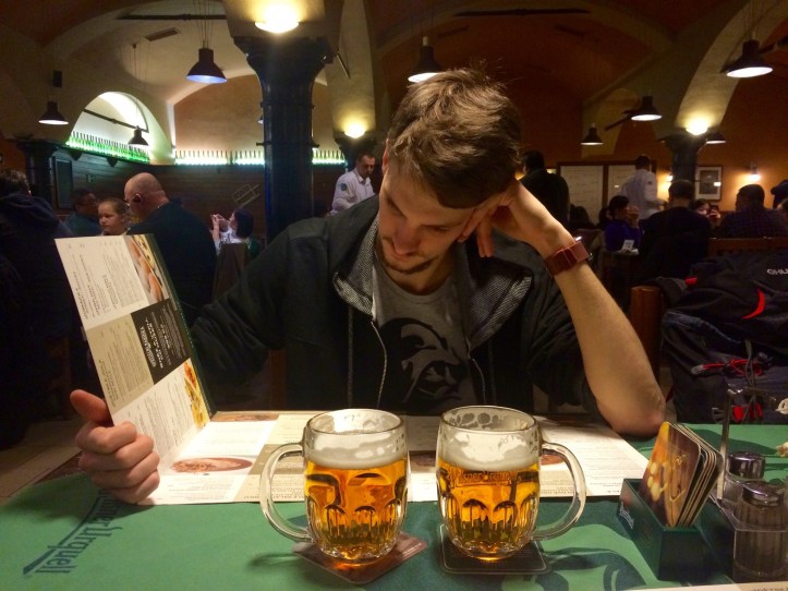 While it had the classic golden color, this unfiltered beer had a different taste – full and sharp, definitely a contrast to the milder bottled version. We would have stayed for a few rounds, but only one beer was on the house here before we were ushered up from the cellars. I think Ondra and I both agreed this was the best version of Pilsner – secret and taboo things are always more exciting.