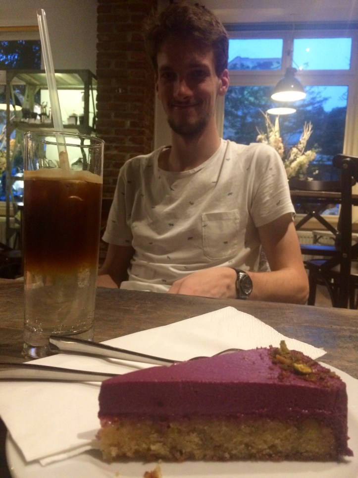 And find your way to Můj šálek kávy. Although the prices are steep, it’s my favorite Prague café. They make amazing pancakes, a variety of delicious cakes, and they are serious about coffee. Choose the filtered coffee (55-70czk) and you can really taste the flavors they claim are in the beans (vanilla, blackberry, orange zest, caramel…). Ondra, who is not generally a coffee person, got the Espresso Tonic drink (80czk) – literally espresso and tonic, which is so cool to watch as the espresso filters its way into the tonic at the bottom. Plus we shared a delicious slice of currant and pistachio cake.