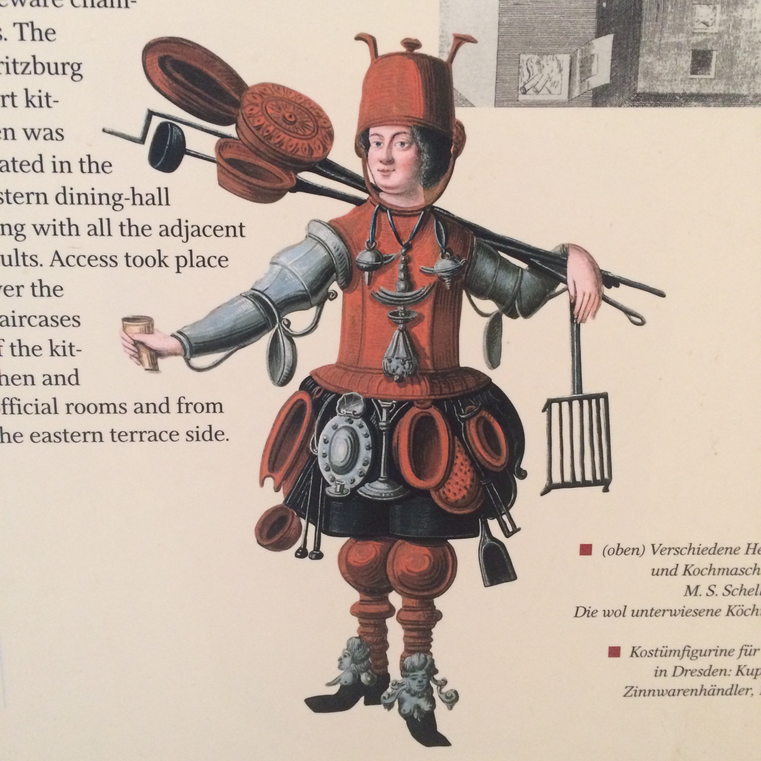 -Iron, bronze, and copper were used in the kitchen, but the last two had to be treated (for example, bronze was boiled with vinegar and coated with horse dung!!!) to keep the metal flavor from the food and also – haha – to keep the metal from poisoning the court.