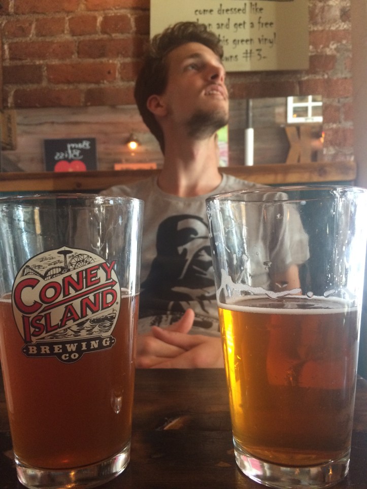 At Sidewalk Cafe in NYC’s East Village. Brooklyn Lager and Sweet Action IPA (both NY beers). Tapped without foam (that was a “reverse culture shock” for me). He liked them! (It’s hard to impress a Czech with foreign beer.)