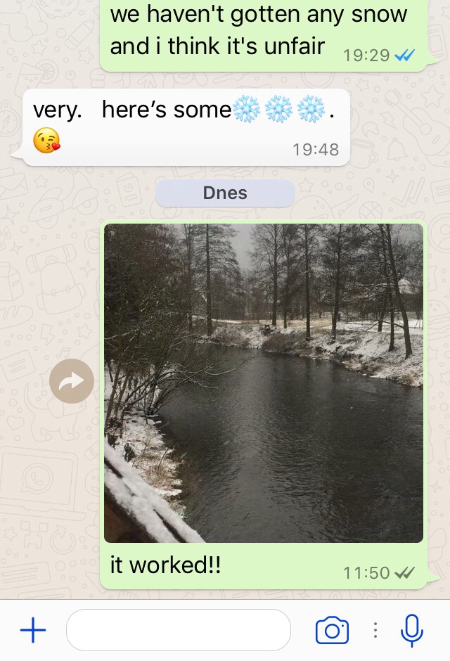And it’s true! Today we got a massive (compared to nothing…) amount of snow. I can’t find how many centimeters it was but it was enough to cause major traffic accidents.