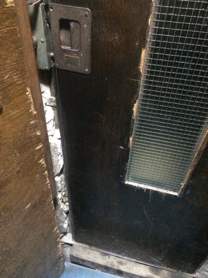 The elevator had a door that needed to be pulled shut with a handle, and on the side where you get out, a grille-door, as well as very outdated push buttons. I pressed “3” and the lift started jolting upwards. Seemed fine. But suddenly it stopped. I opened the left-right door, forgetting the grille one, and saw a concrete wall. Shut again. When I opened the grille door, I realized I was stuck between floors.