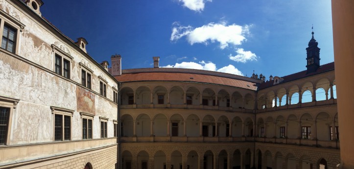 In the morning we went for a visit to the UNESCO-listed, 16th century Litomyšl Castle. It’s one of the largest Renaissance chateaus in Czech Republic, built by the Pernštejn family with Italian-style arcades and High-Baroque features added later. Unlike the day before, it was bright and clear, making the high structures that more impressive.