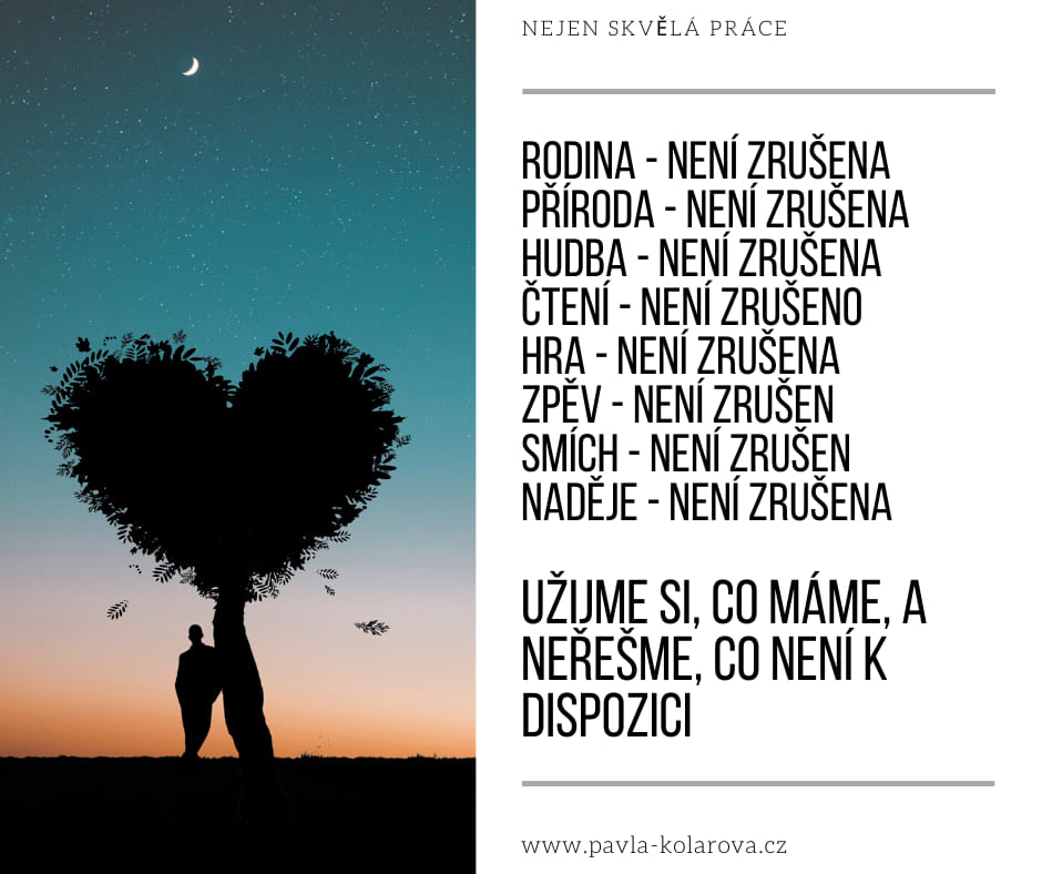 “Family isn’t canceled. Nature isn’t canceled. Music isn’t canceled. Reading isn’t canceled. Entertainment isn’t canceled. Singing isn’t canceled. Laughter isn’t canceled. Hope isn’t canceled. Let’s enjoy what we have, and not worry about what we can’t change.“
