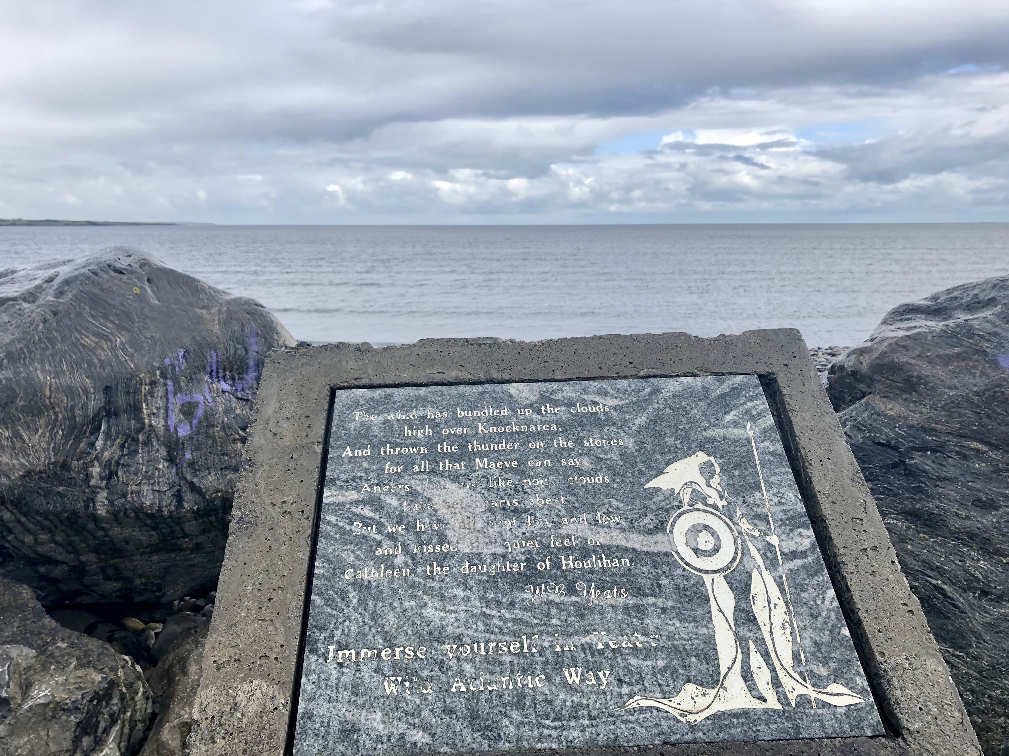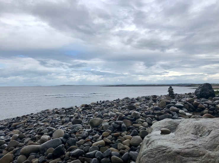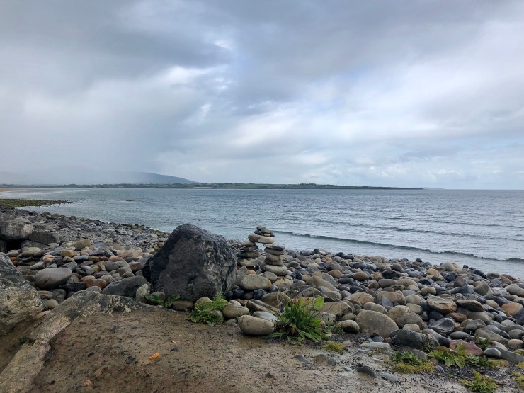 Despite the showers, it was lovely to take a short walk along the strand, admire Maeve’s memorial, and observe a “fairy mound” in real life. These man-made stone piles, called cairns (origin: Scottish Gaelic) are all over Ireland commemorating legends or marking trails, but they never really stop being magical – especially if you believe in faeries.