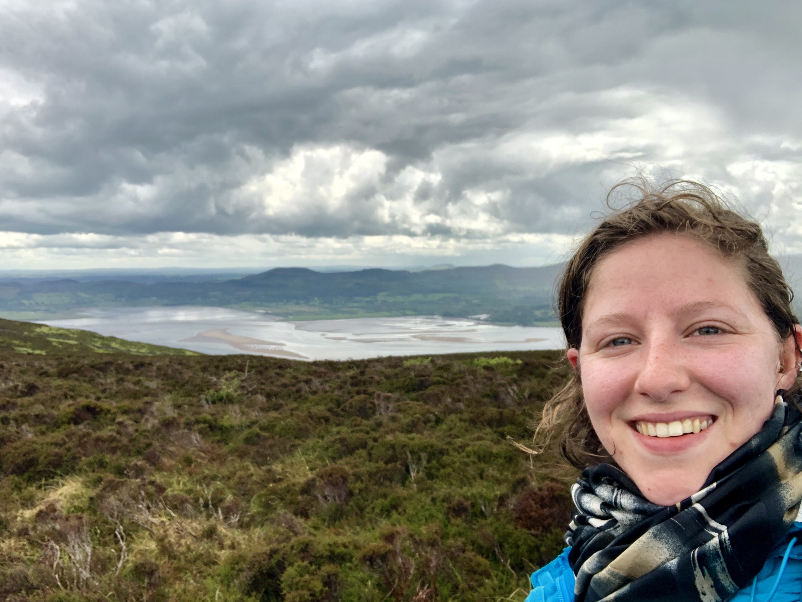 Looking out from the flatter expanse, out towards the faraway mountains, the beaches and the water, I paused again for a few minutes to take some selfies with the view.