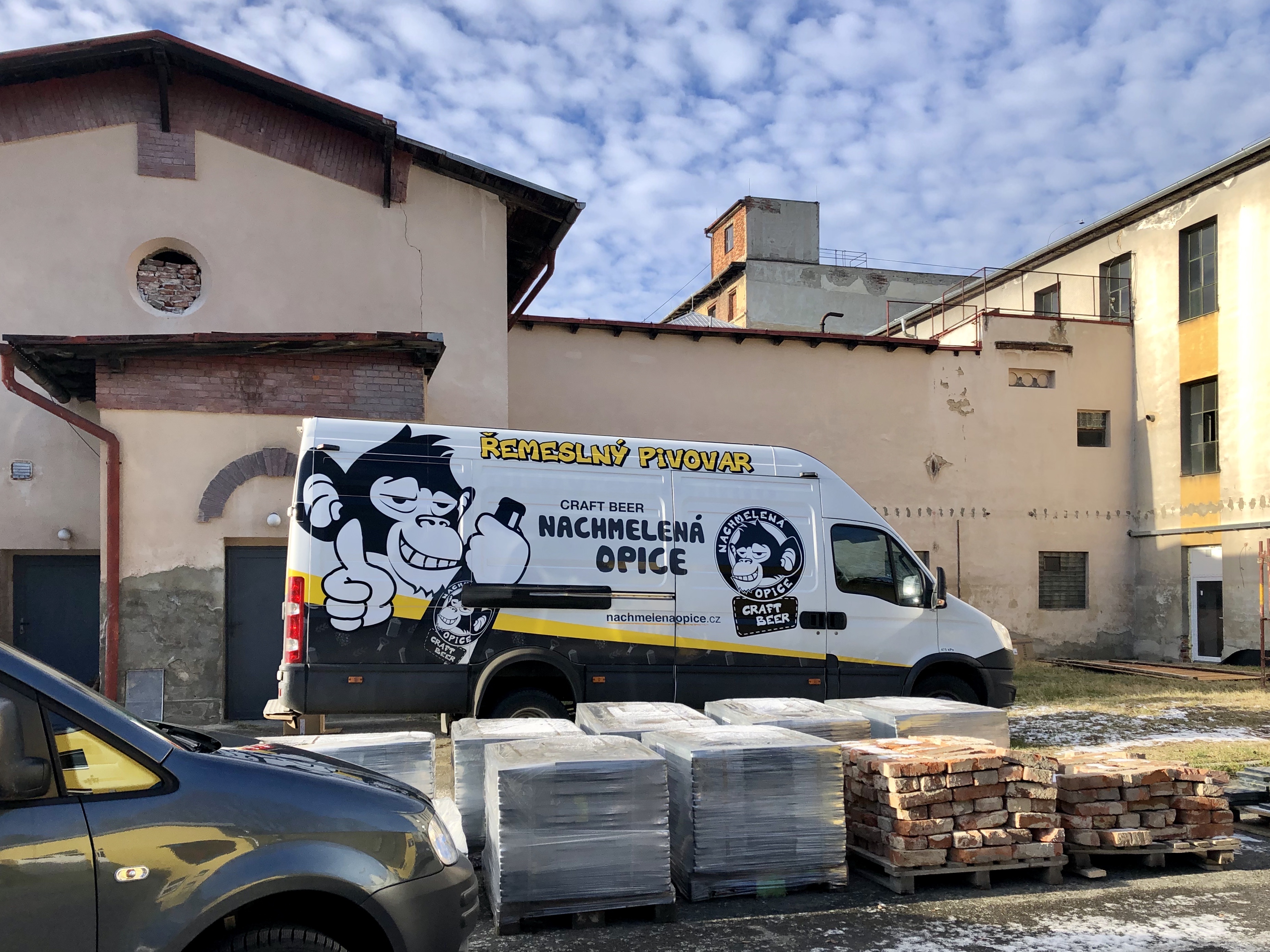 Nachmelená opice – literally, hoppy monkey, but punning on both the fact that they brew beer and that opice can mean a hangover – was born in autumn of 2015. The řemeslný pivovar (craft brewery) is located in Textilní street across the bridge from the main part of town in a former textile factory (makes sense) once called Karnola.
