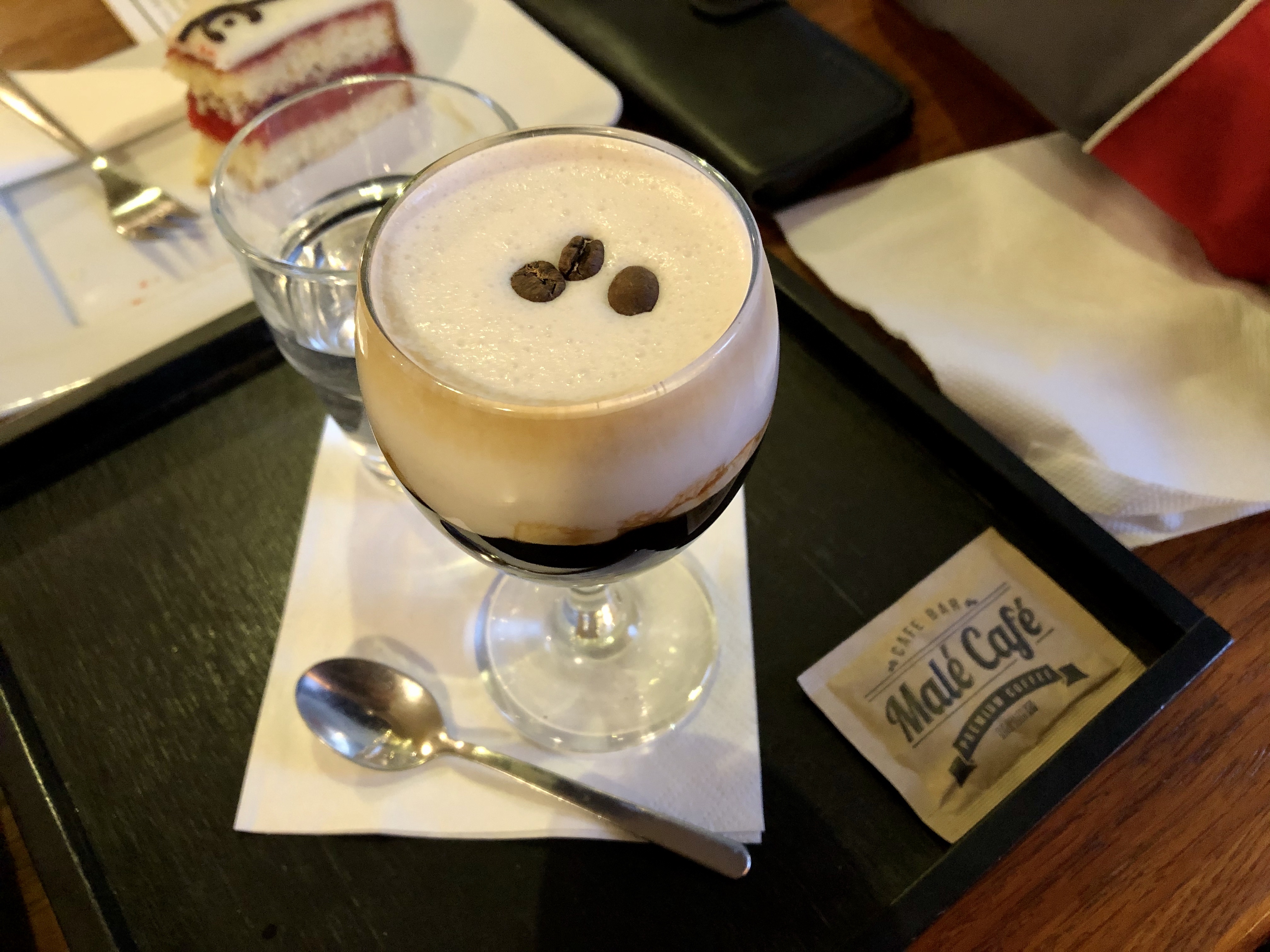 Halfway down the street, you’ll find Malé Café, its name a play on the phrase “small café / small coffee.” It narrow wooden interior makes it all the more cozy, yet means you have to be a lucky arrival to find a seat!