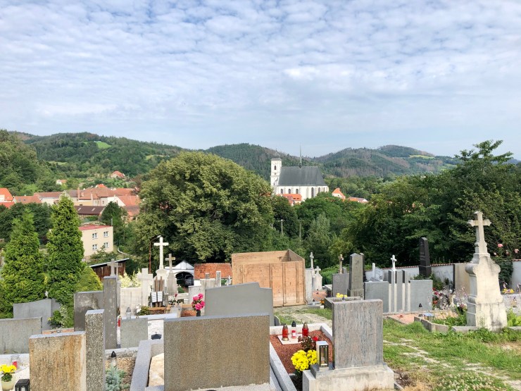 The cemetery in Doubravník. There are sometimes problems with people stealing flowerpots, vases, and candles that family members leave on loved ones’ graves.